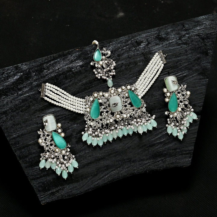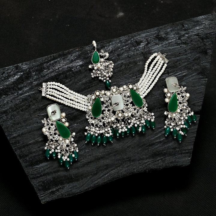 Be captivated by the Emerald Pearl Enchantment choker set, where luminous emeralds meet the soft elegance of pearls. This enchanting piece brings a touch of sophistication and magic to any look.