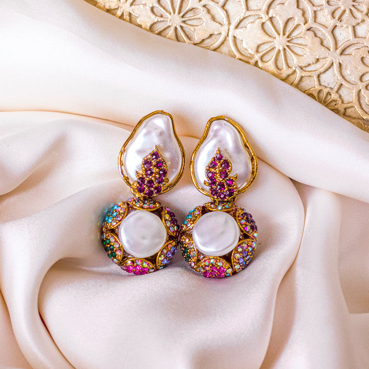 Experience elegance with the Zaynur Royale Emerald Pearl Earrings, a perfect blend of regal charm and modern sophistication. These exquisite earrings feature lustrous pearls encased in a halo of sparkling emerald-green stones, set in a luxurious gold-tone frame. The teardrop design adds a graceful touch, making them ideal for both special occasions and everyday glam.