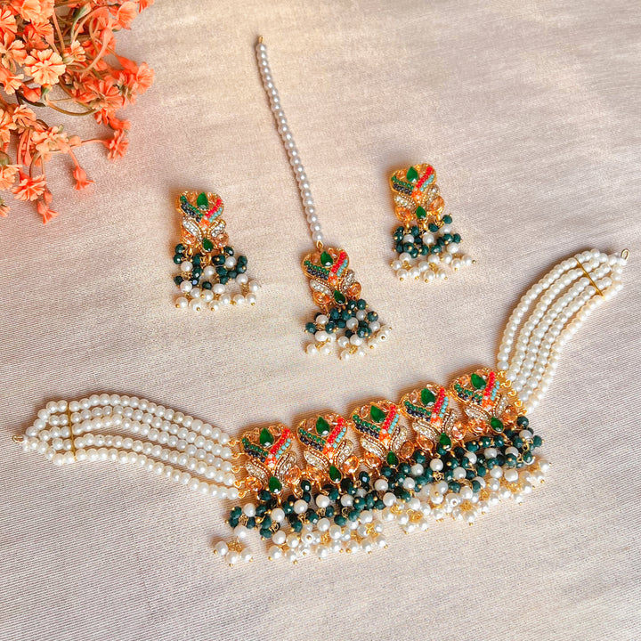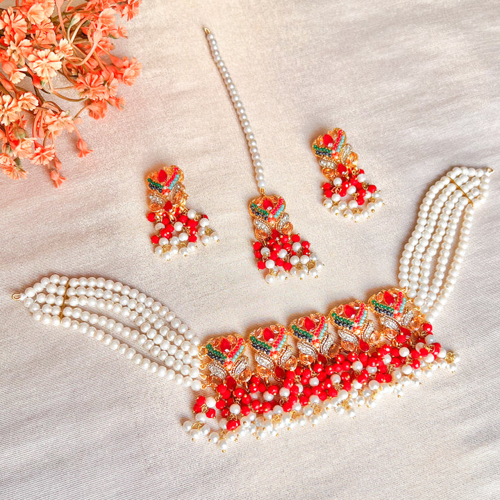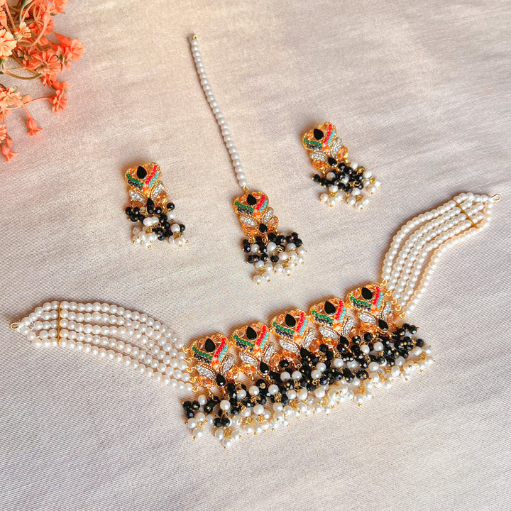 In the Box: 1 Choker, 1 Pair of Earrings, 1 Maang Tikka