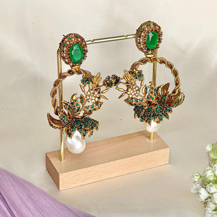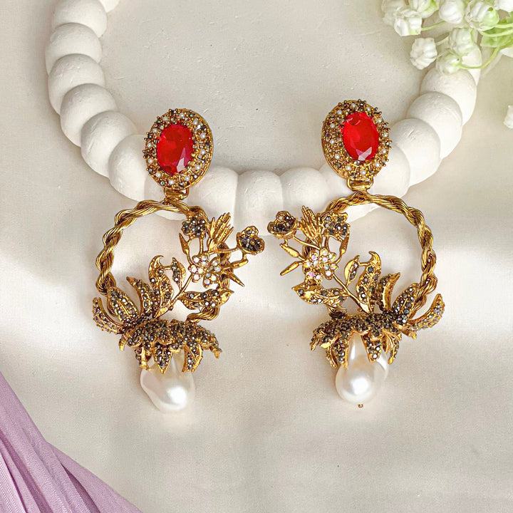 Shafaq, meaning "Twilight Glow," captures the dramatic, profound moment between day and night, when the sky holds both depth and fire. These earrings are a poetic statement of strength and opulent femininity, drawing inspiration from nature's elaborate artistry and the compelling allure of a rich, captivating glow. They are designed to embody a striking, yet graceful, presence.